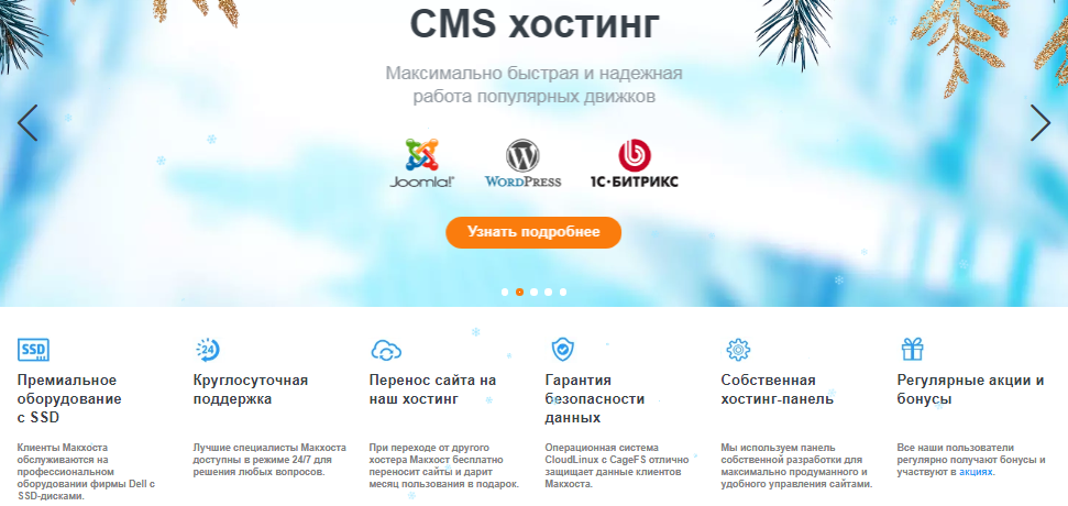 Несмотря на название «премиум», «Макхост» предлагает доступные тарифы, особенно учитывая уровень сервиса, стабильность и техническую поддержку. Это делает его отличным выбором для тех, кто ищет надёжный хостинг в России и за рубежом без переплаты за бренд.